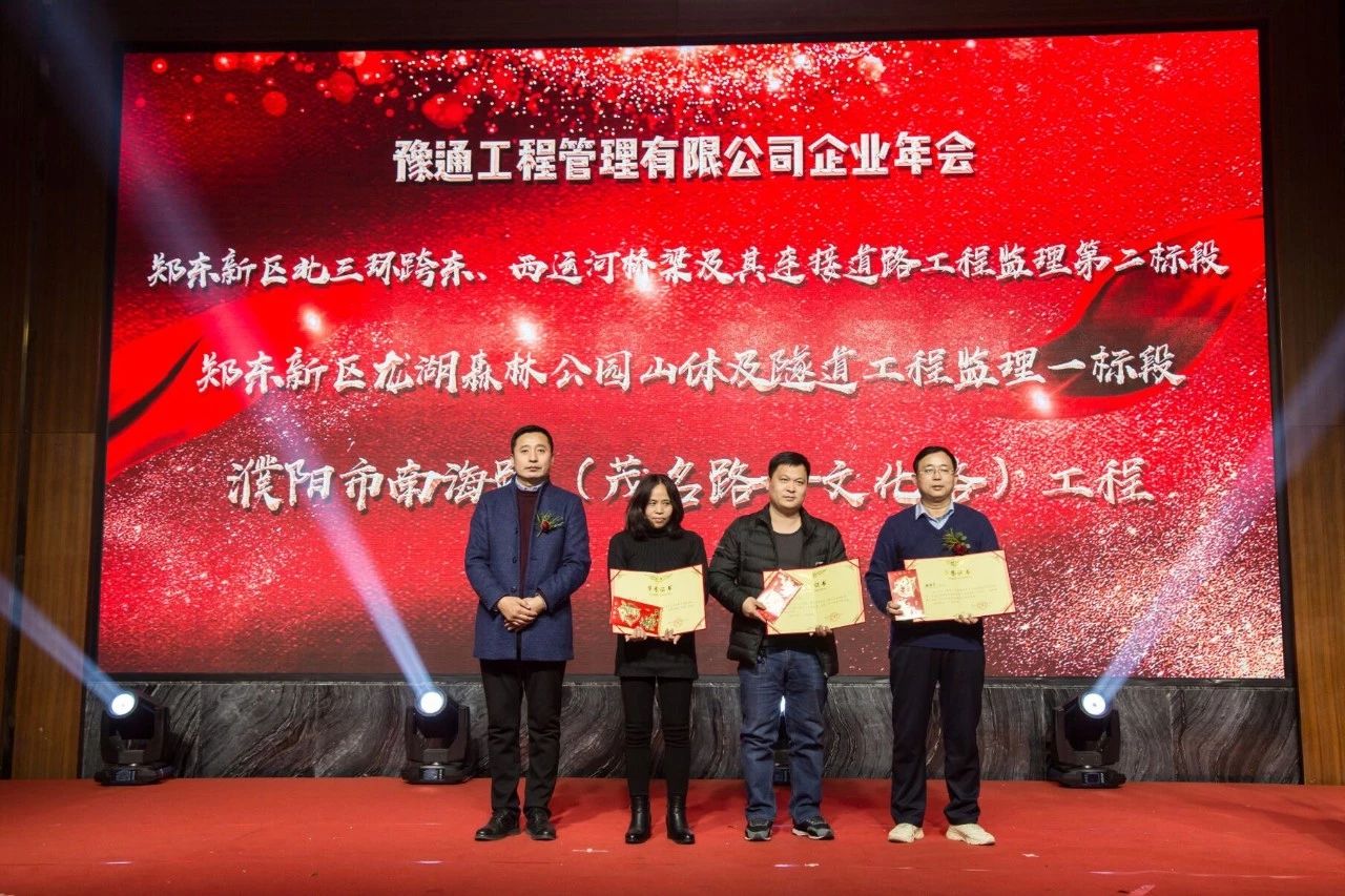 本次年會(huì)中,最讓人動(dòng)容的是2018年度表彰大會(huì)環(huán)節(jié)。公司共計(jì)頒發(fā)了“2018年度優(yōu)秀團(tuán)隊(duì)”獎(jiǎng)、“2018年度優(yōu)秀分公司”獎(jiǎng)、獲得“2018年度市政工程金杯”獎(jiǎng)項(xiàng)目、獲得“2018年度國(guó)家優(yōu)質(zhì)金杯”獎(jiǎng)項(xiàng)目、“2018年度項(xiàng)目?jī)?yōu)秀員工”獎(jiǎng)、“2018年度優(yōu)秀總監(jiān)”獎(jiǎng)、“2018年度公司優(yōu)秀員工”獎(jiǎng)七個(gè)獎(jiǎng)項(xiàng)以嘉獎(jiǎng)為公司發(fā)展默默付出的優(yōu)秀員工們。因?yàn)槊恳晃辉ネ胰说母冻?,才有了不斷前行、共?chuàng)輝煌的豫通管理!