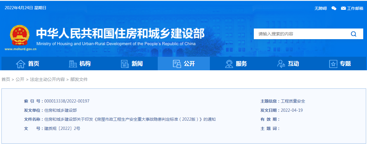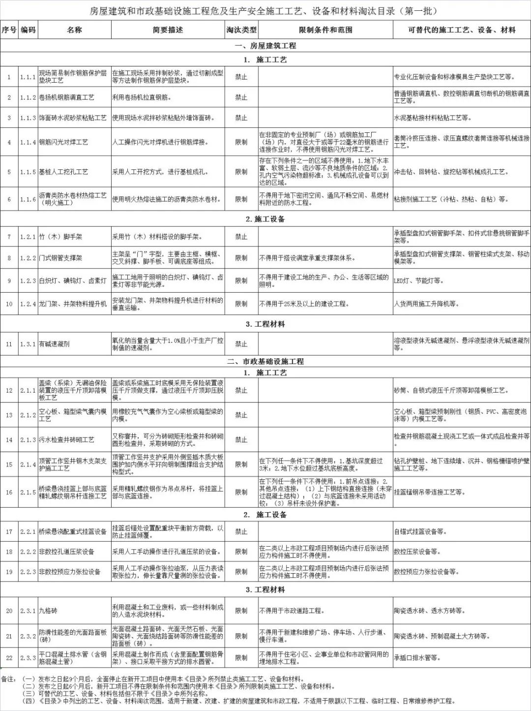 《房屋建筑和市政基礎(chǔ)設(shè)施工程危及生產(chǎn)安全施工工藝、設(shè)備和材料淘汰目錄(第一批)》2022/07/27 13:11